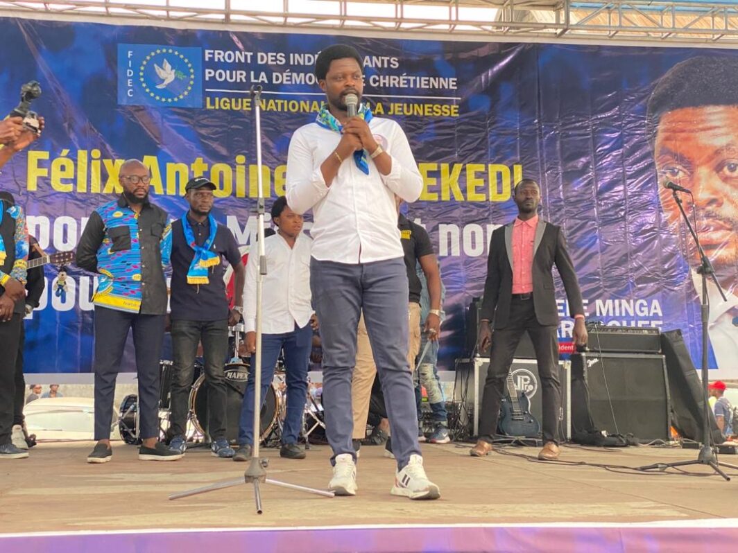 Kinshasa, 28 février 2026 – Le président national de la Ligue des jeunes de la FIDEC, formation politique chère à la gouverneure Fifi Masuka Saini, a tenu un méga-meeting ce samedi au terrain Bouddha, dans la commune de N’djili.